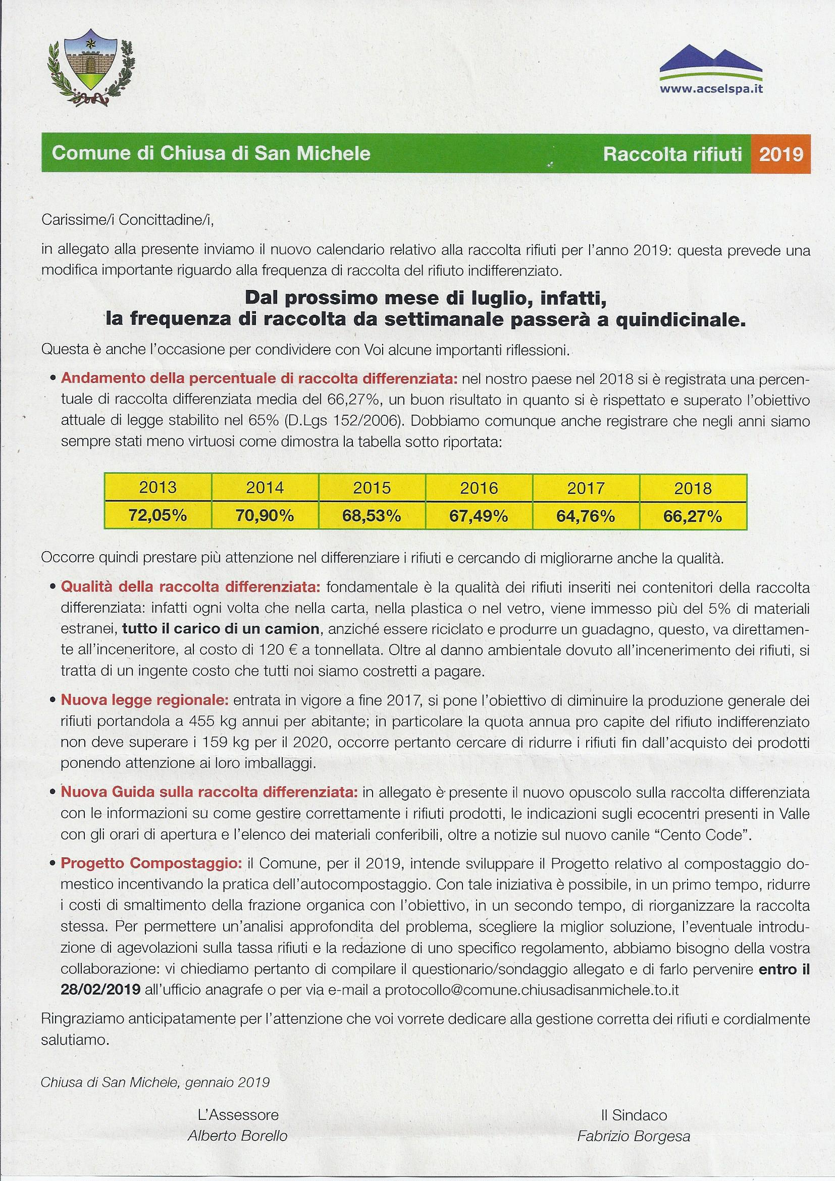 NUOVO CALENDARIO RACCOLTA RIFIUTI PER L'ANNO 2019, INFORMAZIONI SU COMPOSTAGGIO E SERATA INFORMATIVA DEL 6 MARZO 2019 (VEDERE ALLEGATI).