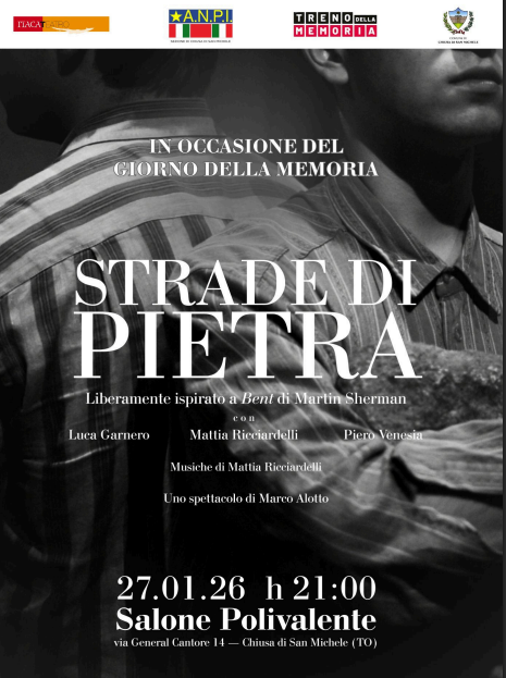 Per ricordare e commemorare le vittime della Shoah, l’Amministrazione comunale insieme all’ANPI di Chiusa di San Michele ha voluto organizzare nella Giornata della Memoria una rappresentazione Teatrale che si terrà martedì 27 c.m. alle ore 21 presso il Salone Polivalente di Via General Cantore 14.