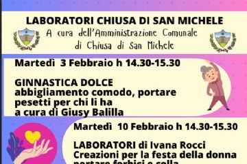 In occasione di Carnevale 2026 La Pro loco coordinamento Associazioni Chiusa di San Michele in collaborazione con Azione Cattolica, Ass. Pensionati, Alpini, Società Filarmonica, AIB organizza una...