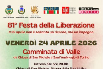 Si comunica che nella giornata di Venerdì 24 Aprile 2026 in occasione della Festa della Liberazione si svolgerà la camminata in Valle da Chiusa di San Michele a Sant'Ambrogio